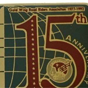 Vintage 1992 GWRRA 15th Anniversary Enamel Pin Button Honda Goldwing Motorcycle