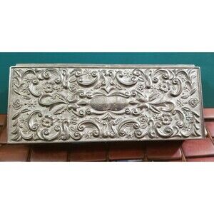 Vintage 1992 Godinger Silver-plate Trinket Jewelry Box Engraved Vine Pattern with Mirror Gray Velvet Lined 9"x4"x2"