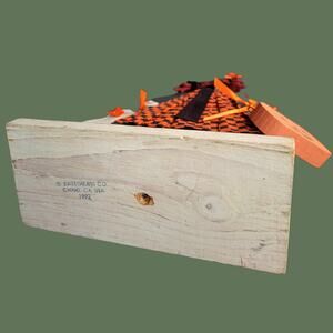 Sweet auburn haired witch, her small white ghost friend and orange jack-o-lantern trick or treat basket made from wood cutouts with orange and black checked fabric dress, yarn hair and ribbons all over and a little paint crafted into a piece of decor standing almost 16" tall by Sweetheart Co. of Chino, CA. in 1992. Great condition!