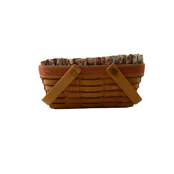 Vintage 1992 Longaberger Basket Used Floral Fabric and Plastic Liner