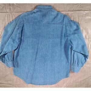 This Vintage 1992 Looney Tunes Unisex Embroidered Button Down Denim Shirt in size Large is a nostalgic piece inspired by Warner Bros. classic cartoons from the 1990s. Made of chambray denim material, this shirt features long sleeves and a casual style that is perfect for everyday wear. The embroidered Looney Tunes design adds a unique touch to this timeless piece, making it a standout addition to any wardrobe. In very good condition.
