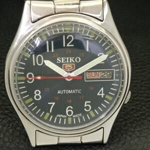 This watch has a stainless steel case in great condition with almost no flaws. The face features Silver accents on a Black Face giving an awesome vintage look overall. It also has a date function!