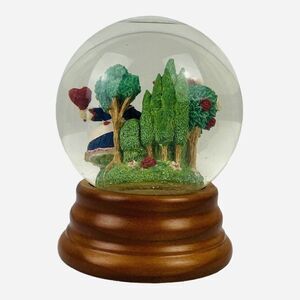 Vintage 1992 Fitz and Floyd Alice in Wonderland Musical Waterball Queen of Hearts in Original Box 1990s 90s Water Snow Glitter Globe Red Queen Flamingo Roses Hand Painted Wood Wooden Music Box Collectible Gift Replacement Colorful Cartoon Story Looking Glass Playing Cards