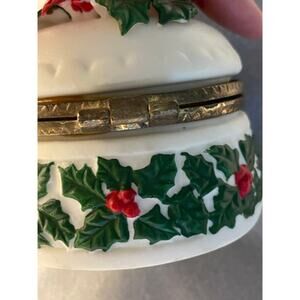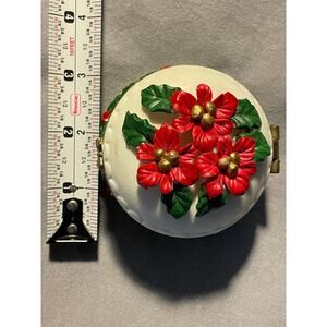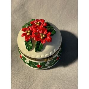 Vintage 1993 ARTMARK Jade porcelain poinsettia hinged trinket jar