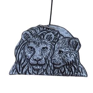 Noah’s Ark–themed pewter metal wind chime featuring intricately detailed animal pairs including lions, giraffes, penguins, and elephants. Hanging gracefully from a shepherd’s hook, this rustic piece adds a touch of biblical charm and timeless artistry to your garden or patio décor. Its antique finish and handcrafted design make it a meaningful accent for faith-inspired or nature-themed spaces.