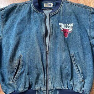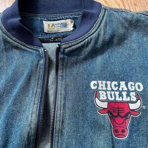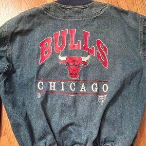 Vintage 1993 Chicago Bulls Zip Up Jean Jacket By Locker Line Sports Size Large