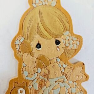 Vintage 1993 Cracker Barrel Precious Moments Hand Made Wooden Christmas Ornament