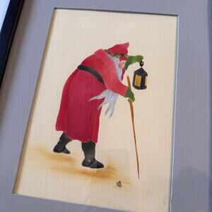 Vintage 1993 Father Christmas St. Nicholas Framed Painting