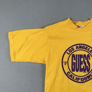 Vintage 1993 Guess Shirt Men’s Medium Yellow Los Angeles California Short Sleeve