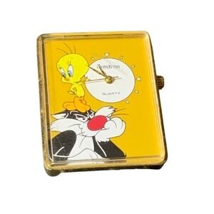 Keywords: Armitron watch, Looney Tunes, Sylvester, Tweety Bird, vintage watch, cartoon watch, collectible watch, 1993 watch, limited edition, yellow watch, black band, wristwatch, novelty watch