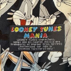Vintage 1993 Looney Tunes Mania Bugs Bunny Cartoon Character Black Neck Tie