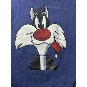 Vintage 1993 Looney Tunes Sylvester Cat Crewneck Sweatshirt Navy Warner Bros. XL