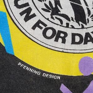 Vintage 1993 Schwister Fun-Run shirt in black, women's medium (19x23). Features bold "Run for Daylight" graphic from a local marathon event perfect for retro running vibes or fitness nostalgia.