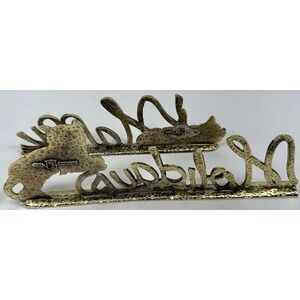 Vintage 1993 Metzke cast pewter tabletop décor featuring playful cat figures and a flowing "Happy Holidays" script. Finished with an applied gold-tone brass wash over pewter, with intentional antiqued contrast that highlights the raised lettering and detailed fur texture.