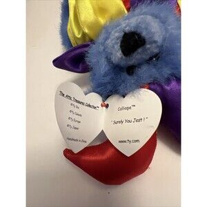 Vintage 1993 Ty Attic Treasures Calliope Jester Clown Blue Bear Beanie Plush