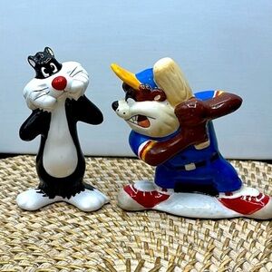 Vintage 1993 Warner Bros Sylvester Salt Shaker & Tazmanian Devil Pepper Shaker