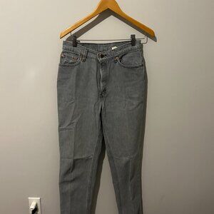 Vintage Levis- size tag says 11 (juniors size). Based on a the measuremnts I took and the levis measurements on their size chart I think this is equal to a modern levis 27. The denim is a light grey stonewash, 100% cotton and zero stretch. 11" rise.