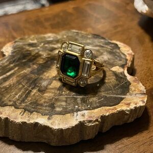 Vintage 1994 Avon Bold Treasures Gold Tone and Green Cocktail Ring Size 7