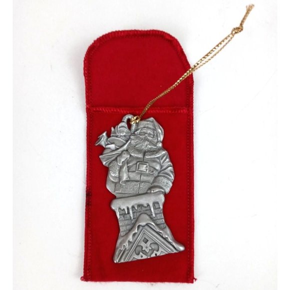 This is for a Vintage 1994 Avon Pewter Collectible Santa's Arrival Ornament In Soft Pouch. Good condition, box does have slight wear due to age. Please see all pictures.