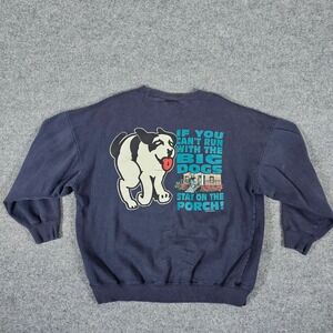 Vintage 1994 Big Dogs Graphic Sweatshirt Blue "Stay On The Porch" Men Small Flaw