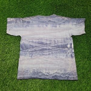 Vintage 1994 Celestial Sun Moon AOP T-Shirt Mens Large Single Stitch Cosmic 90s Art Tee Graphic Tee All Over Print Grunge Hippie Spiritual Psychedelic Rave Crystal Wash Cloud Dye Tie-Dye Blue Purple Lavender Seaboard Atlantic Short Hills Tee Tag 100% Cotton