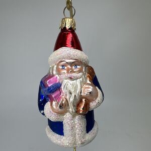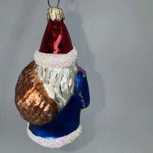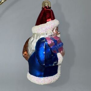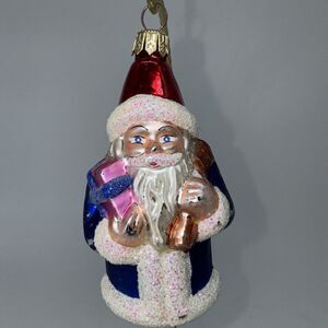Vintage 1994 Christopher Radko Glass Blue Santa Ornament 4" 930651 Hat Sack Gift
