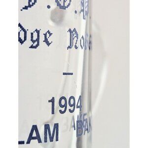 Step back in time with this vintage 1994 Clam Bake glass mug from F.O.P. Lodge No. 66, a charming piece of fraternal police memorabilia. Featuring a sturdy handle and clear glass design adorned with bold blue text, this mug captures the essence of nostalgic gatherings and timeless camaraderie. Made in the USA, it embodies historical significance and classic craftsmanship, making it a must-have for collectors of fraternal keepsakes or vintage glassware. The glass mug has a comfortable heft to its weight and measures approximately 4" tall and 3" wide (not including the handle). Add a touch of history and character to your collection with this commemorative treasure.