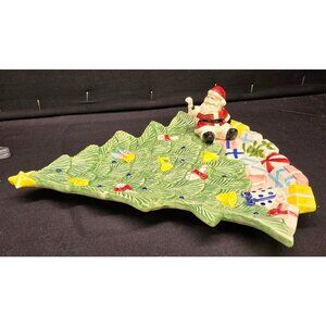 Vintage 1994 Fitz & Floyd Omnibus 3D Santa Christmas Tree Canape Plate