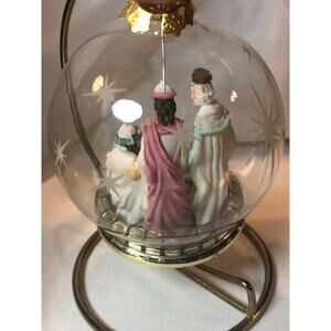 Vintage 1994 House Of Loyd Three King & Jesus Glass Hanging Ornament With Stand. Beautiful ornament. Preowned no chips or cracks . 3.75x3
