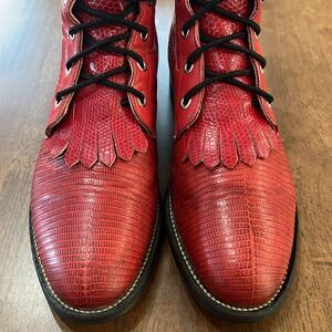Vintage 1994 Justin Red Lizard & Kipskin Kilted Roper Boots Women’s 7.5B Rare