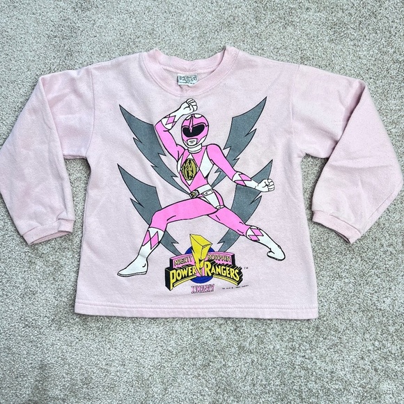 Vintage 1994 Mighty Morphin Power Rangers Pink Graphic Sweater Girls 6 7