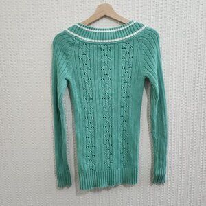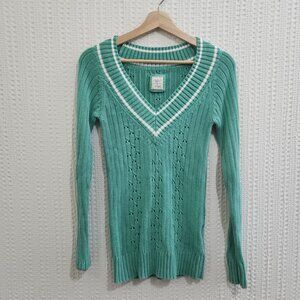 Vintage 1994 Old Navy Green Knit V-Neck Sweater Women’s Medium Y2K Preppy