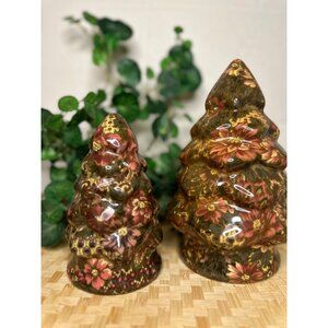 Vintage 1994 Patricia Reach Decoupage Ceramic Floral Christmas Tree Set of 2