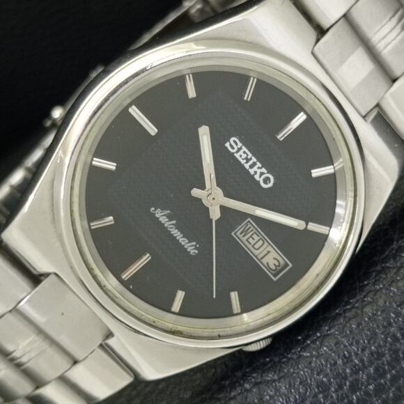 Vintage 1994 Seiko Automatic Mens Silver Watch W/daydate & Black accents