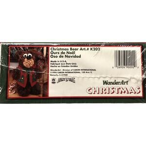 Vintage 1994 WonderArt Christmas Bear, Art #K202 - no knitting or crocheting, just wrap and tie yarn. Needed contents are included except for a 20 oz. beverage bottle and glue. Good starter craft project. Finished size of bear is 11”. Condition is new in original box. Shipped USPS.