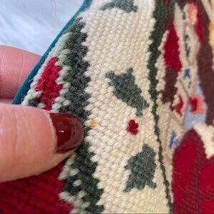 Vintage 1994 Woolen Needlepoint Santa Pillowcase Cover Velvet Back 14" x 14" NWT