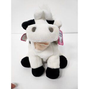 Vintage 1995 Black White Plush Soft Toy Cow Hand Puppet Happiness Always NEW