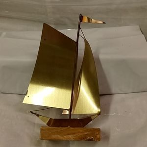 Vintage 1995 Brass Sailboat with a Marble Base , THE LIGHTHOUSE