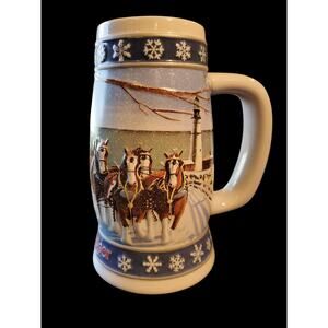 Vintage 1995 Budweiser Stein Lighting The Way Home Christmas Holiday Mug Horses