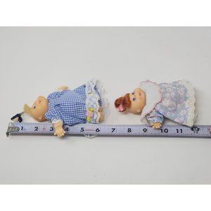 Vintage 1995 Cabbage Patch Babies Mini Dolls With Beautiful Dresses both need a little cleaning otherwise in good used condition. Would make a great addition to any collection. Measurements in pics. Comes as pictured.