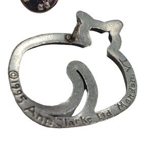 vintage cat pin, kitty brooch, Ann Clarke Ltd, silver tone pin, open work design, collectible pin, cat lover gift, vintage jewelry, 1995 brooch, silver tone brooch, Ann Clarke jewelry, unique cat pin, cat themed accessory