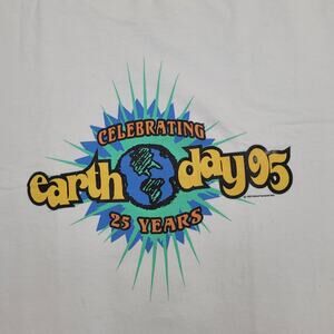 Vintage 1995 Earth Day shirt, medium 20x28, white with classic environmental awareness graphic. A must-have for eco-conscious vintage collectors.