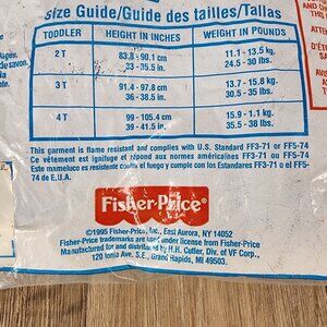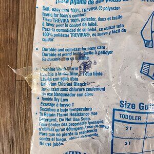 Designed for toddlers' comfort, these vintage 1995 Fisher-Price 2-piece pajamas offer durability and ease of care. Made from Trevira polyester, they ensure a cozy and safe sleep.