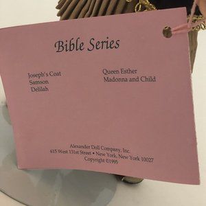 This is a vintage 1995 8” Madame Alexander doll. He’s from the Bible Series #13691 for Samson. He’s got a beard, mustache, and period clothing with lace up sandals. Comes with original box, paperwork including Official Collector Registration. Also included is a small metal stand. Great collector piece.