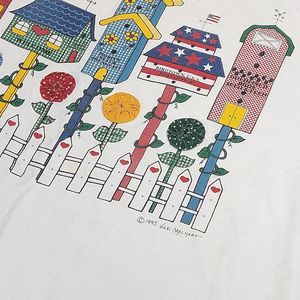 Vintage 1995 Melhart Designs Single Stitch Bird Houses White T-Shirt Size Large