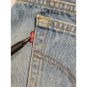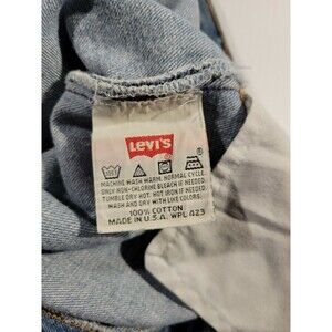 Jeans in amazing shape. Some minimal wear to bottom of leg opening. Otherwise no holes, no tears. Missing the brown levi tag by belt loops.