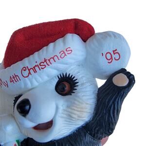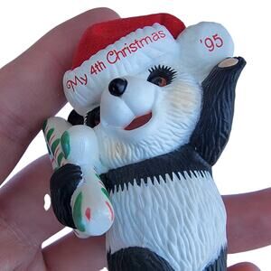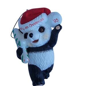 Vintage 1995 My 4th Christmas Panda Bear Ornament with Candy Cane