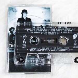 This is the original cassette tape of the Rolling Stones' 1995 album Stripped. Please note, I no longer have a tape player to test the functionality, so I can't confirm if it plays properly. However, the cassette tape looks to be in good condition based on a visual inspection.