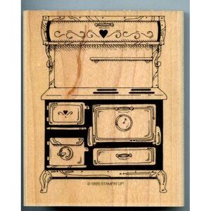 Vintage 1995 Stampin Up! Old-Fashioned Stove Rubber Stamp Wood-Mounted NEW