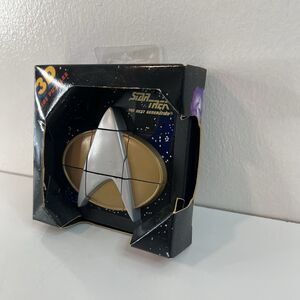 The Vintage 1995 Star Trek The Next Generation DaMert Co. 3D 4"x4" Slide Puzzle is a nostalgic and collectible item for fans of the Star Trek franchise. This puzzle features a black plastic design with less than 15 pieces, making it a challenging and fun activity for ages 6 and up. With its unique 3D sliding mechanism, this puzzle is sure to provide hours of entertainment for both young and adult fans of the series. Made in China, this puzzle is a must-have for any Star Trek enthusiast looking to add a piece of retro memorabilia to their collection.